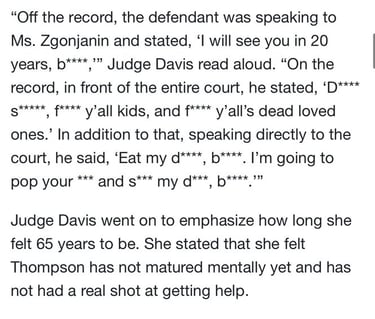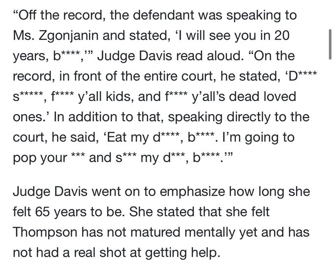 Because Thompson is Black and, in her words, a “victim of society” who “fell through the cracks.”