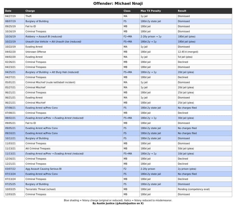 Travis County prosecutors and judges repeatedly downgraded or dropped charges, allowing Nnaji to remain a threat to children and the community.