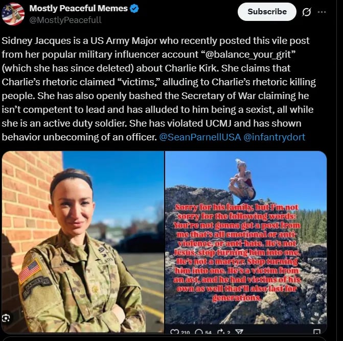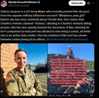 Exhibit I: Army officer dismissing Kirk as “a victim of his own rhetoric.”