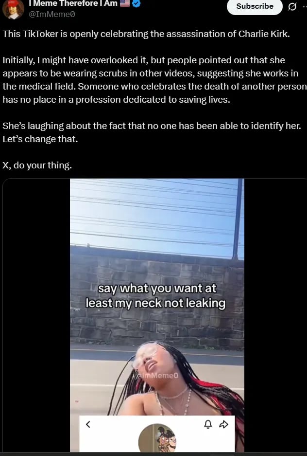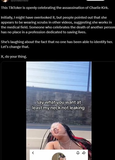 Worse still, this rhetoric has not been limited to anonymous accounts. An Army Major posted that Kirk was “not a martyr, but a victim of his own rhetoric,” only deleting it under pressure. Susquehanna University faced backlash after a student group disrupted a vigil for Kirk, with administrators accused of tolerating open celebration of his murder.