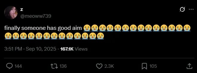 Humor became one of the most common ways to mask the celebration of Kirk’s murder. Posts circulated that turned his death into punchlines — mockery delivered with a laugh-cry emoji.