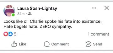 Exhibit F: From Facebook user Laura Sosh-Lightsy,“He spoke his fate into existence. Hate begets hate.”