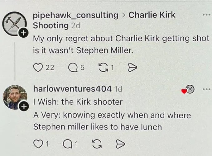 This is why accountability matters. Employers, platforms, communities, and political institutions must draw the line clearly: criticism and dissent are speech, but cheering for murder is not. To blur that line is to invite escalation. To enforce it is to preserve the very conditions where speech, not bullets, settles political disputes.